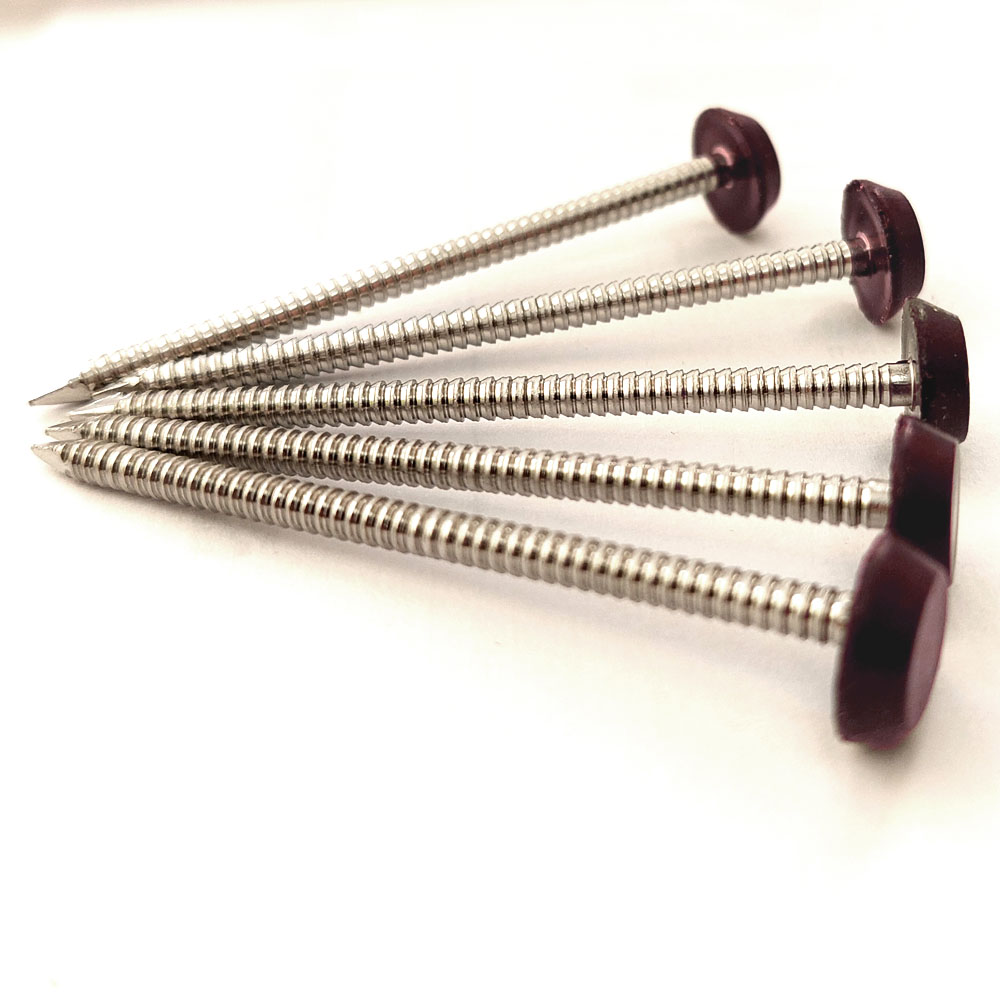 The POLYTOPS® nails have a coloured head which is made from tough UPVC polymer. These clearance, end-of-line products come in grey and brown colours.